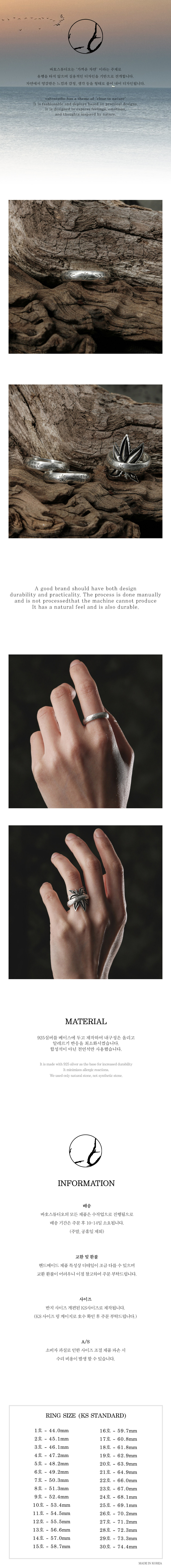 바호스튜디오 만의 감성으로 인디언 주얼리를 표현한 반지입니다.반지 두께가 얇아 단품으로 착용하여도 심플한 디자인이며 embossed leaf ring 과같이 착용시 유니크한 매력을 느낄 수 있습니다.