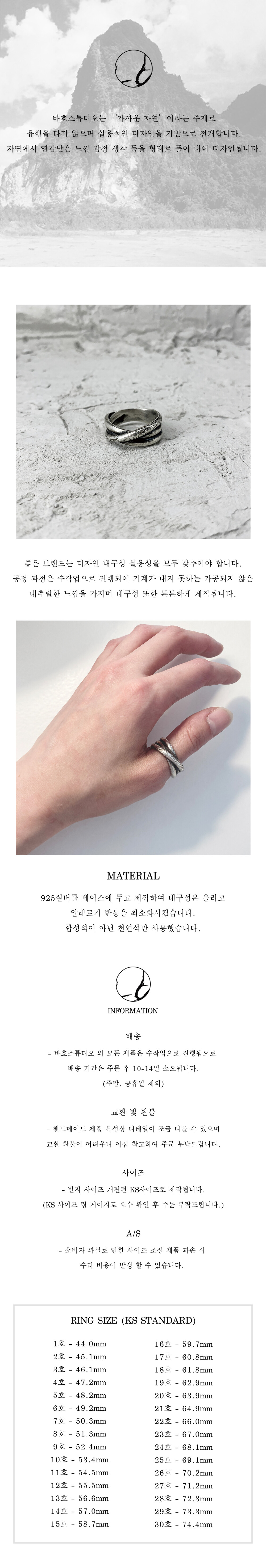 유화 처리하여 빈티지한 매력을 느낄 수 있으며texture line ring 에 링하나를 추가하여 좀더 볼드하게 착용가능합니다.