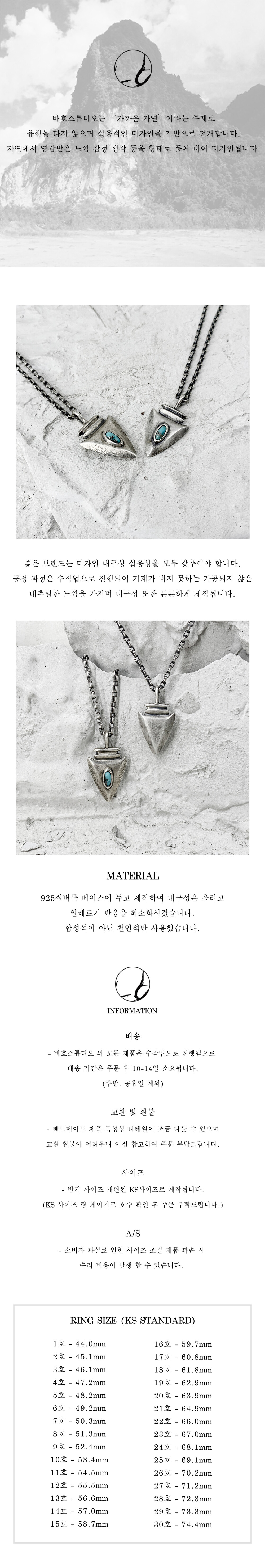 화살촉 모양으로 디자인된 팬던트로 한쪽면 중앙에 천연석(터키석) 으로 포인트를 주었습니다. 원석이 싫으신 분들은 뒷면으로도 착용가능합니다.