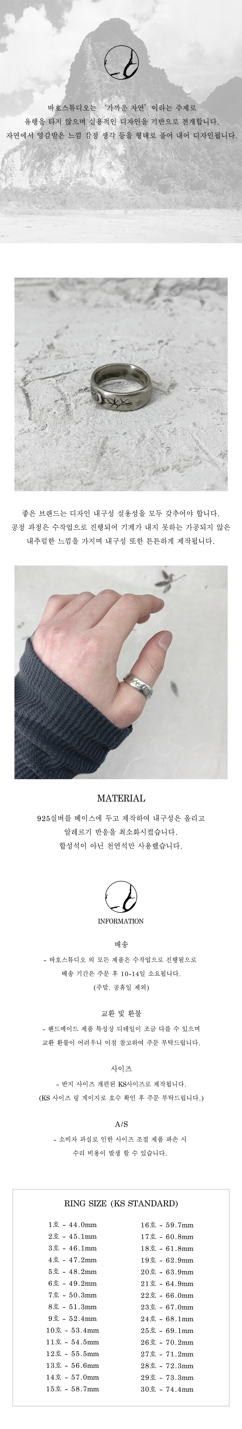 인디언 쥬얼리 느낌으로 디자인 된 나무 각인링입니다. 인디언 주얼리의 러프한 느낌을 바호스튜디오 만의 감성으로 디자인되었습니다.
