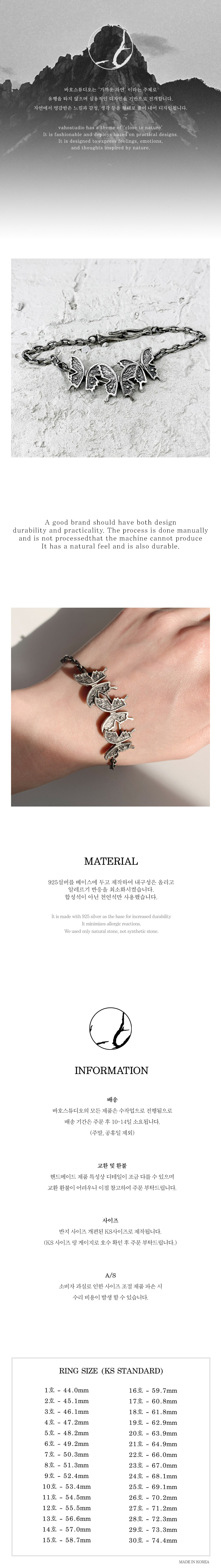 체인 팔찌 형식으로 디자인되어 착용감이 좋으며 여성분들도 착용할 수 있도록 최소 사이즈 16cm부터 제작 되었습니다.