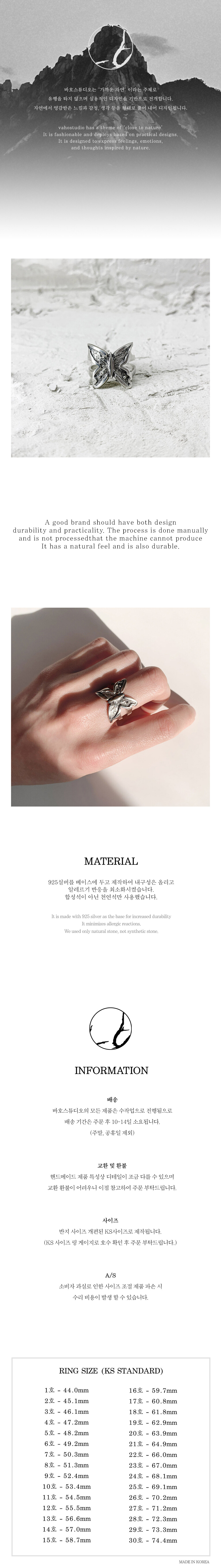 바호스튜디오 만의 감성으로 디자인된 나비 모양 반지입니다. 남녀 모두 착용해도 이질감이 들지 않도록 나비 모양 자체를 날카롭게 디자인하였으며 착용감 또한 손가락을 두르고 있게 제작하여 볼드하지만 편하게 디자인되었습니다.